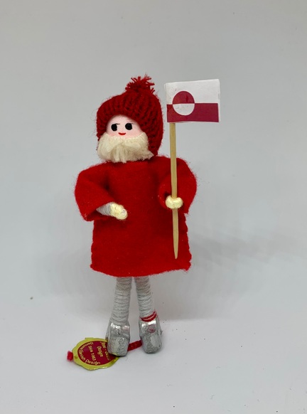 Sød nissefar med det flotte Grønlandske flag i hånden.