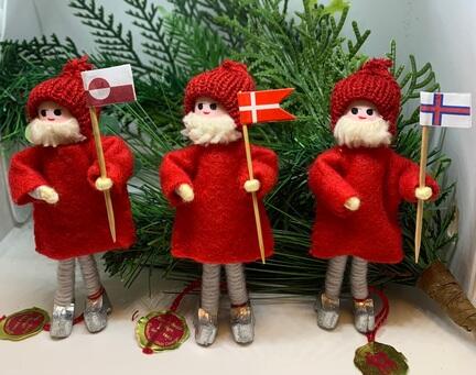 3 søde venner, nissemænd med hver deres flag i rigsfællesskabet.